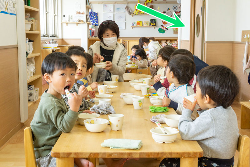 現在は卵アレルギーの子を預かっているので他の子も含め全食卵は使用せず、みんな同じ給食を食べています。