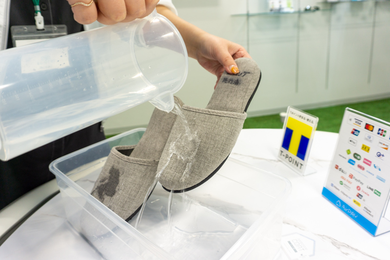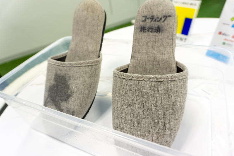 ガラスコーティングと言うとスマホがメジャーですが、こんな感じでスリッパにもコーティングできるそう。