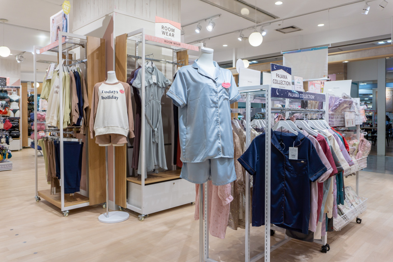 通常の店舗よりも広い売り場には、インナーやルームウェアの品揃えが豊富!