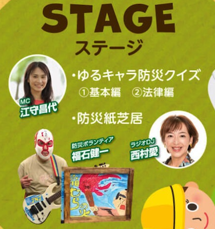 キャスター西村愛さんと防災ボランティア福石健一さんによる防災紙芝居が行われます。