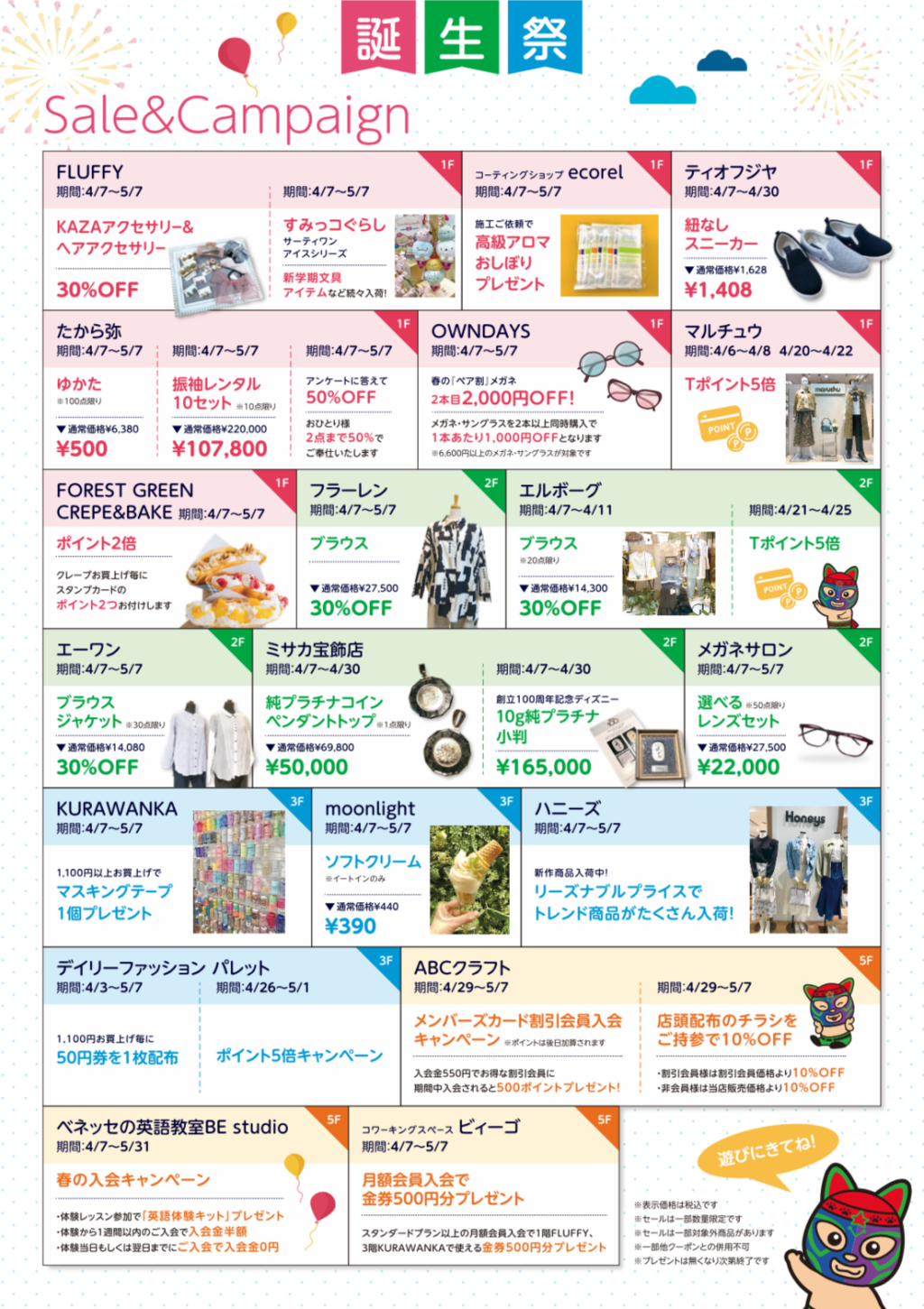 誕生祭期間は、各店舗でお得なセールやキャンペーンも開催中!
