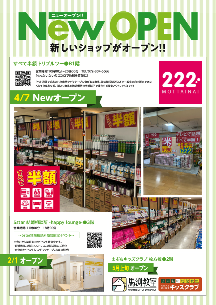 【開店】222(トリプルツー)枚方店 地下1階