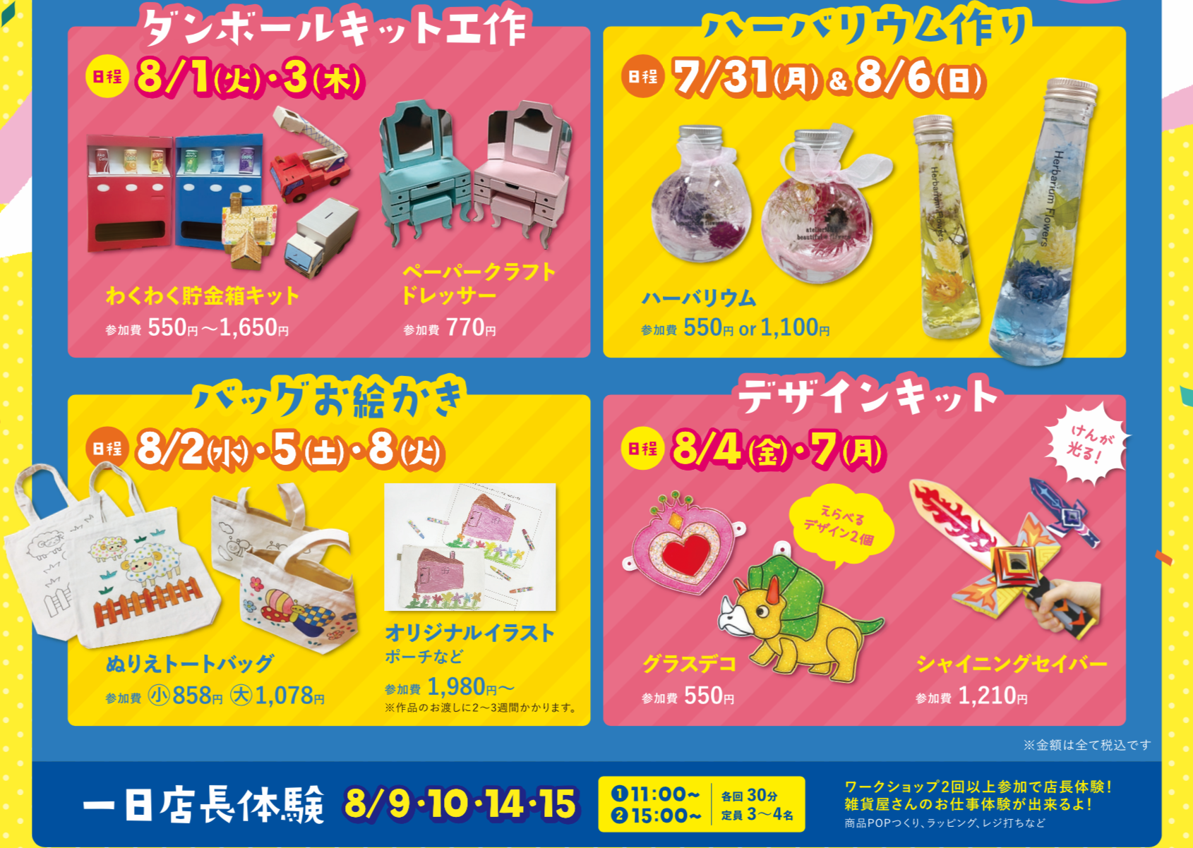 また、「夏休みものづくりチャレンジ」のワークショップに2回以上参加すると、雑貨店「KURAWANKA」1日店長体験ができます!