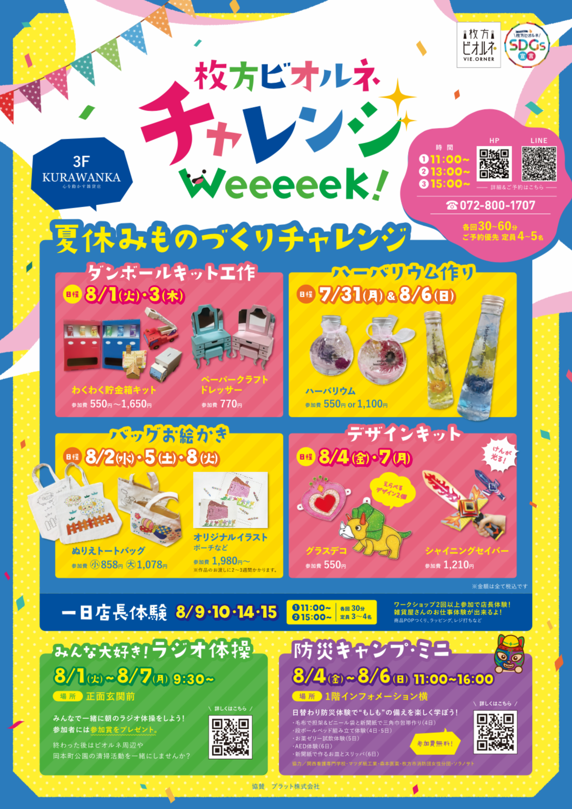 【イベント】枚方ビオルネチャレンジWeeeeek!「夏休みものづくりチャレンジ」 ※8月8日(火)まで