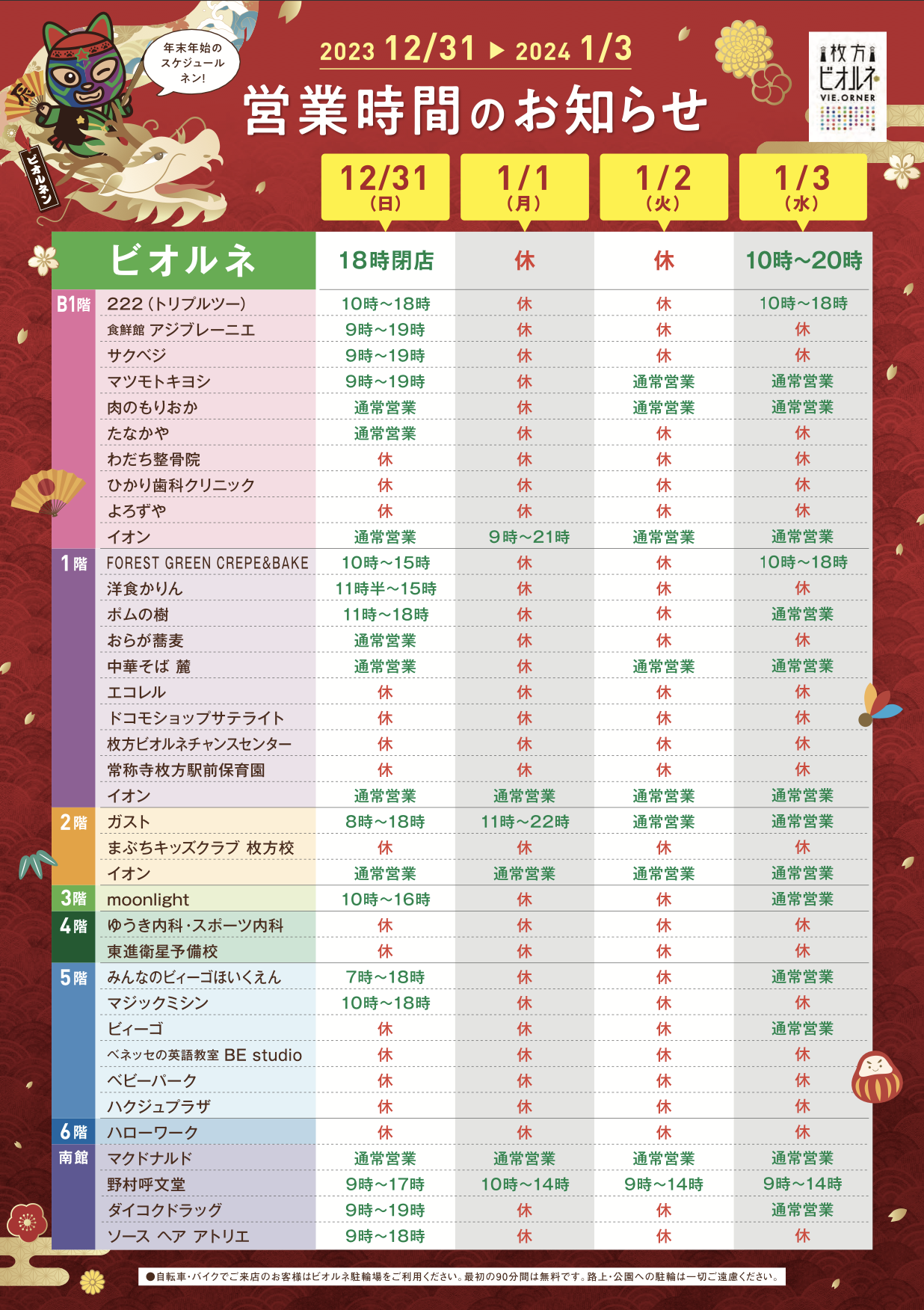 今回は年末年始のスケジュールや、お得なお買い物情報を中心にご紹介いたします。