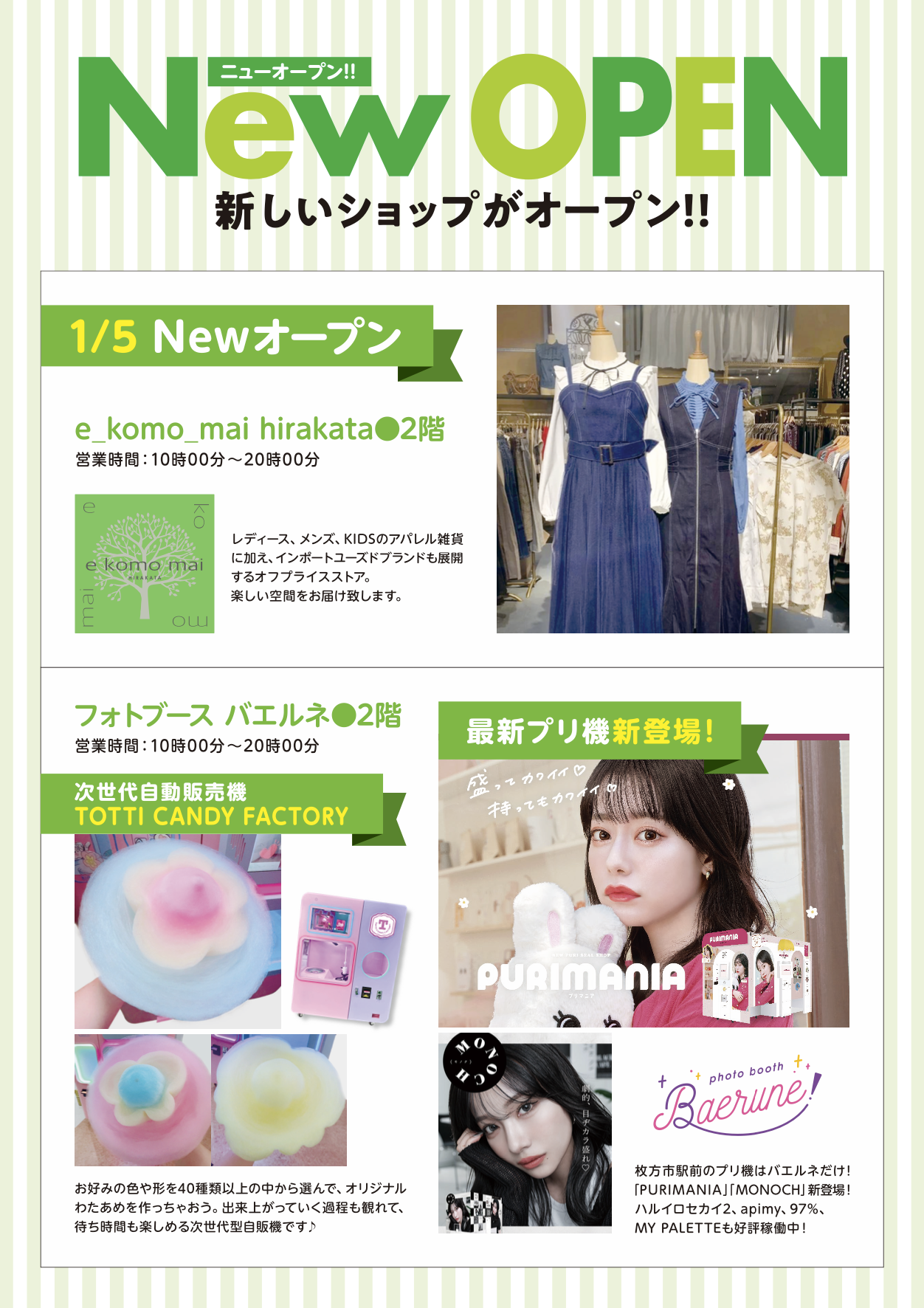 1月5日(金)、2階に「e_komo_mai hirakata(エコモマイ枚方)」がオープン!