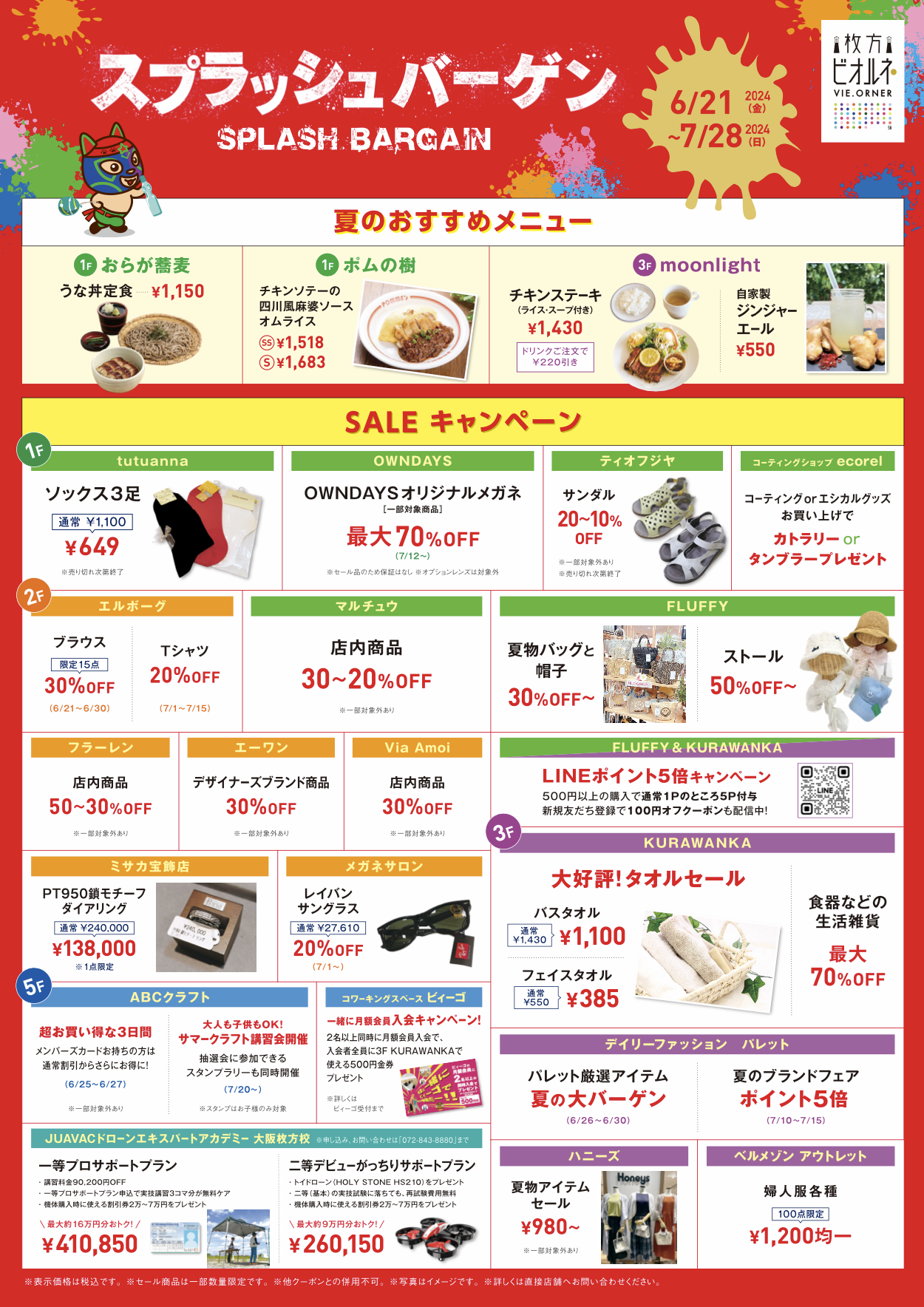 その他、枚方ビオルネ全館でおトクなセールやキャンペーンを開催!