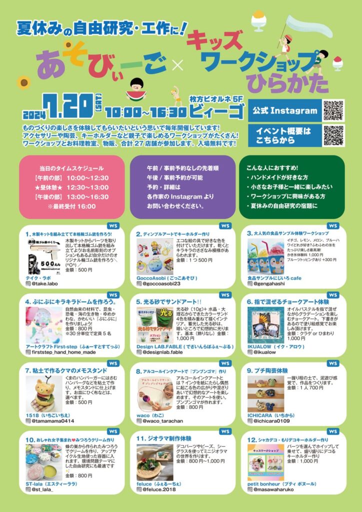 「あそびぃーご×キッズワークショップひらかた」が行われる7/20(土)は、他にも楽しいイベントが同日開催!