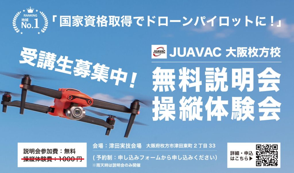 【説明会/セミナー】JUAVAC大阪枚方校 無料説明会 操縦体験会〈合同スクール説明会〉 津田実技会場