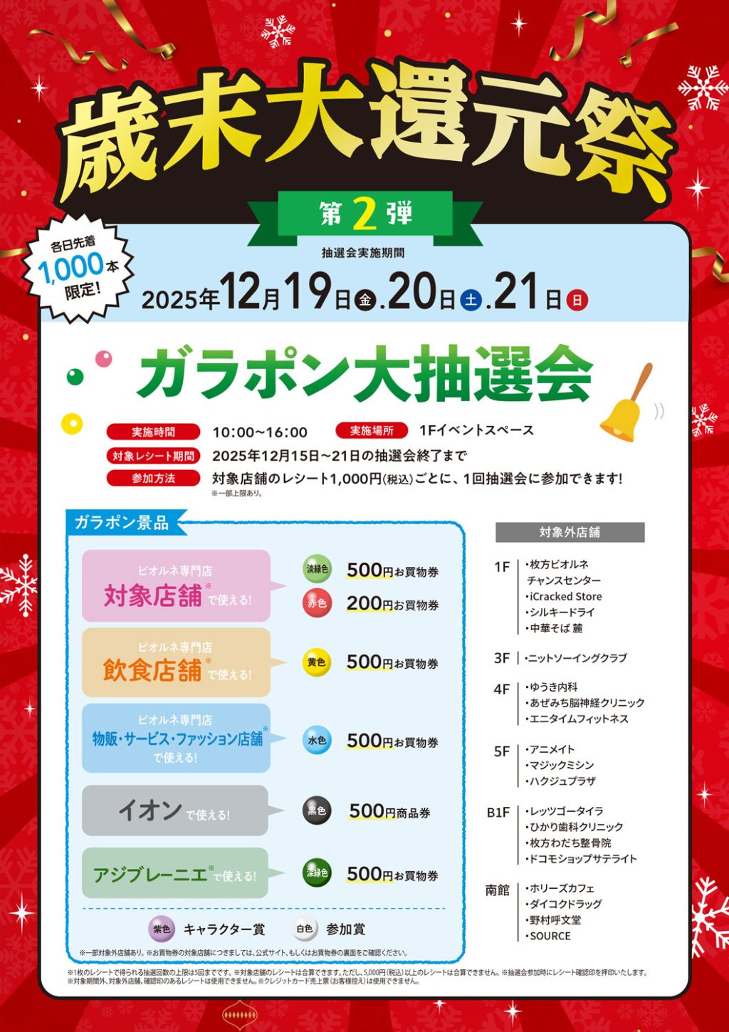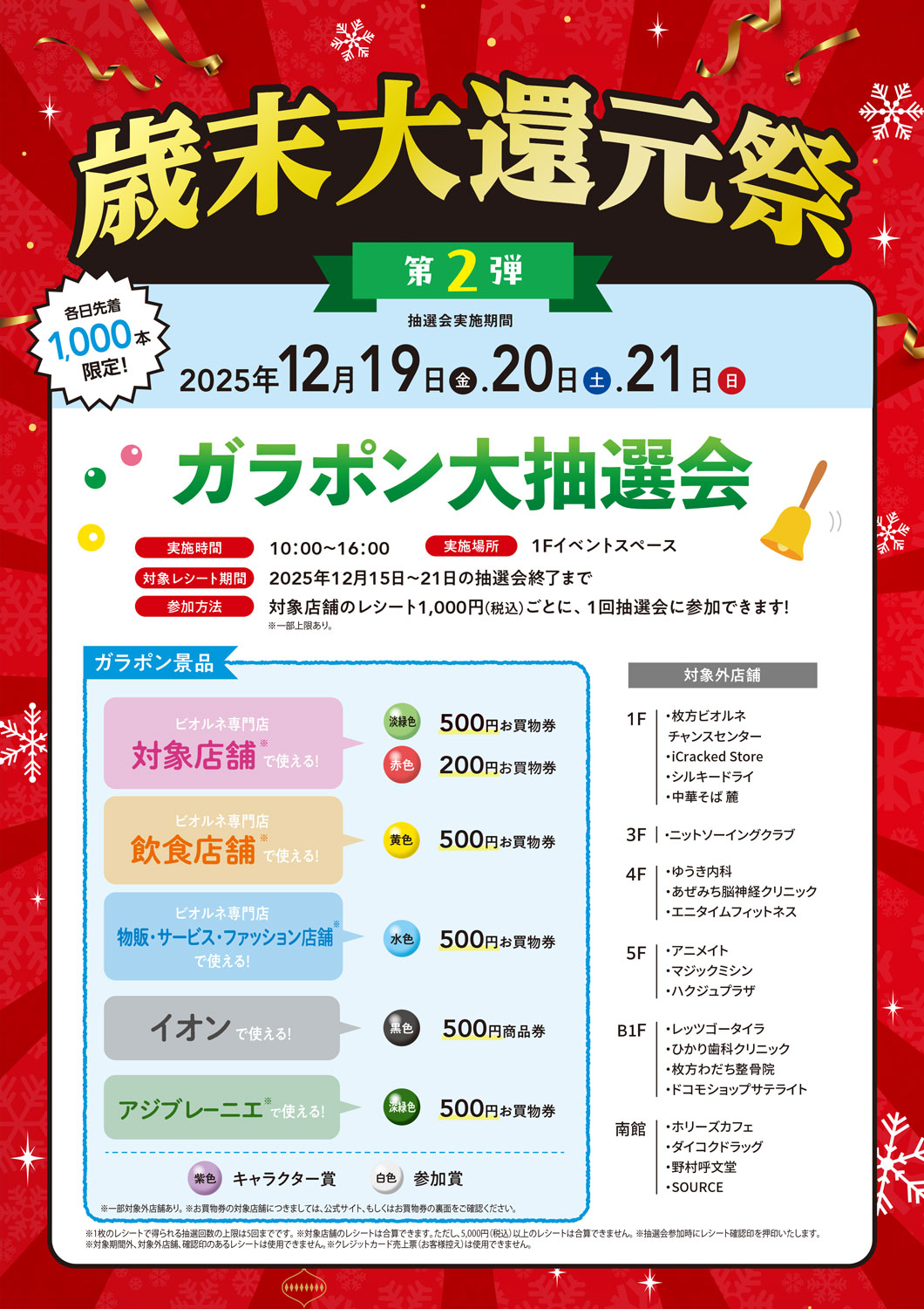 第2弾★12/19(金)〜お買物券、イオン商品券が当たる!【ガラポン大抽選会】