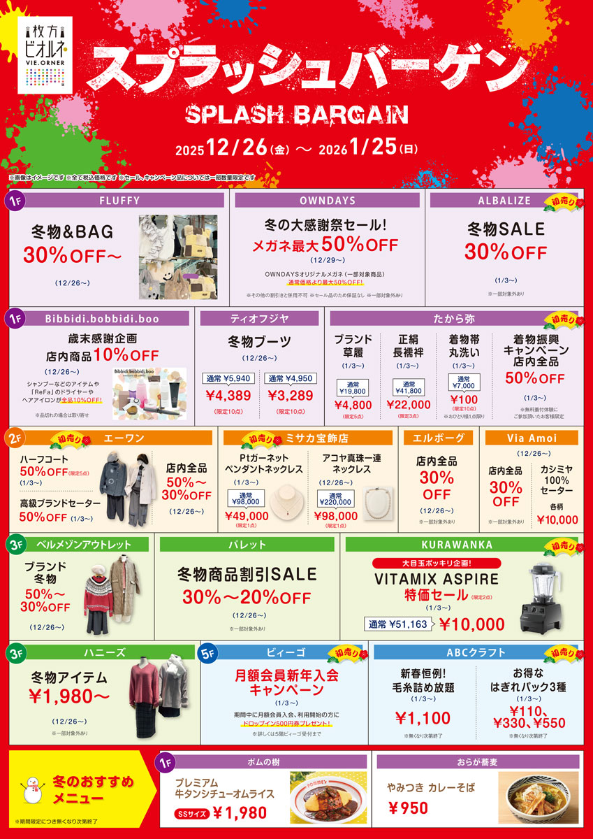 12/26(金)~1/25(日) スプラッシュバーゲン