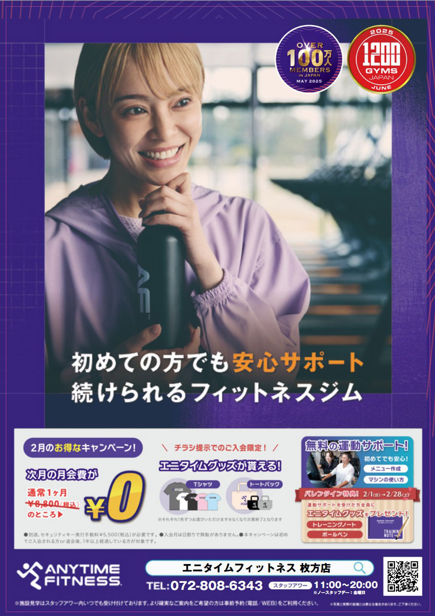 エニタイムフィットネス枚方店では、2月入会キャンペーンを実施中🔥