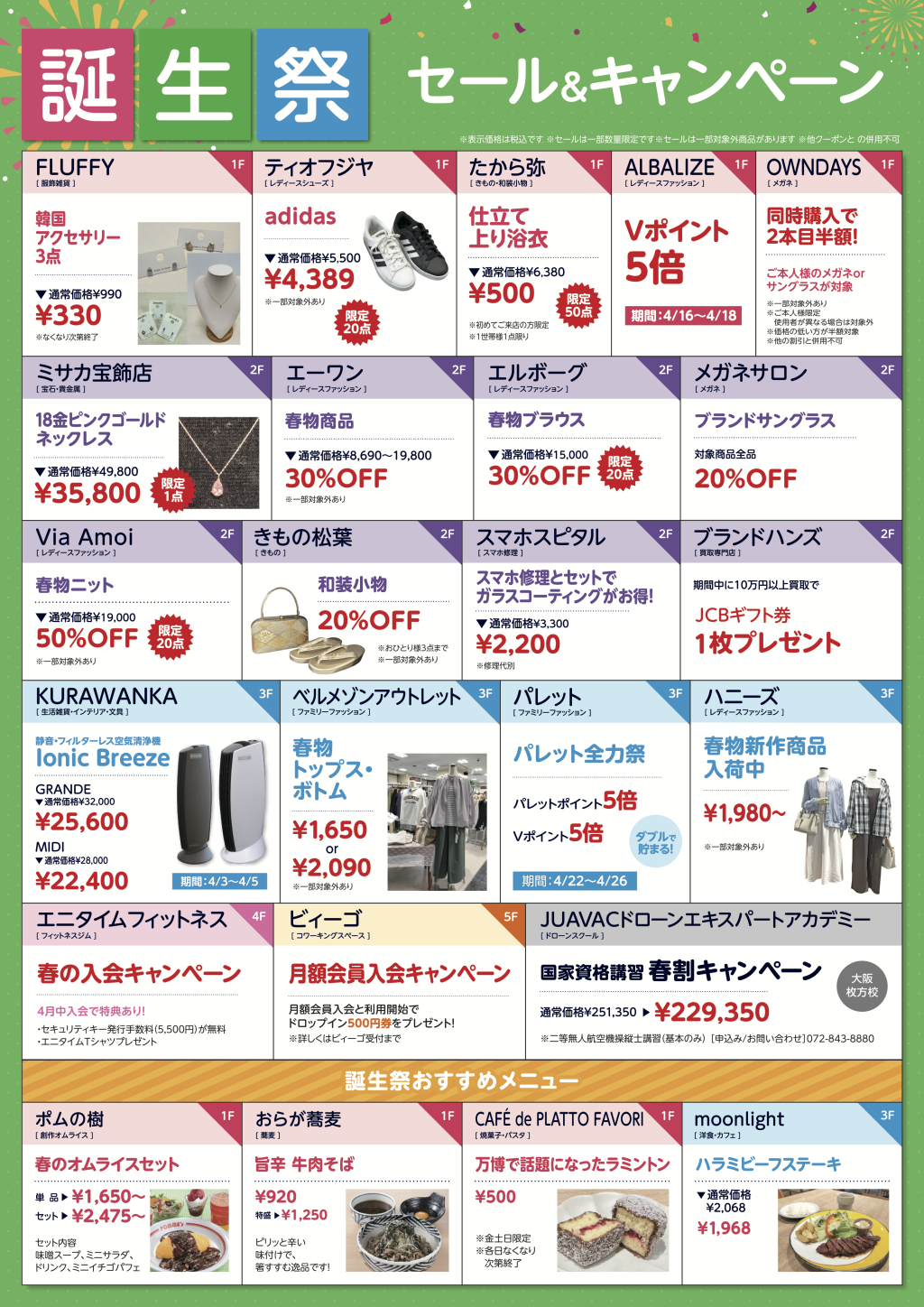 36周年を迎えた枚方ビオルネでは楽しいイベントやキャンペーンが盛りだくさん!