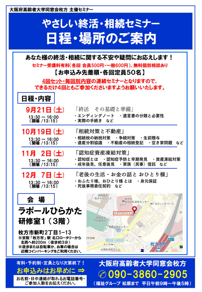 大阪府高齢者大学同窓会枚方会員500円