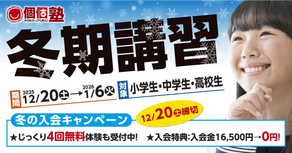 個個塾では現在、冬の入会キャンペーンを開催中!