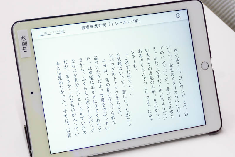 カラフルで取り組みやすい画面からスタートして、文章を読む時間を測ったり、