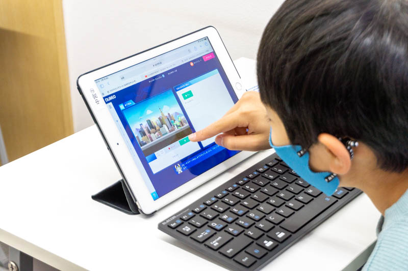 タブレットの宿題がでたり、社会の授業の時に調べたことをキーボードで文字入力したりしてます!
