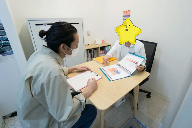 まずは電話、またはネット予約などで事前に予約を取り、予約日時に『ゆうき内科』へ。初回はカウンセリングや医師問診を経て、テスト照射や実際の照射を実施します。