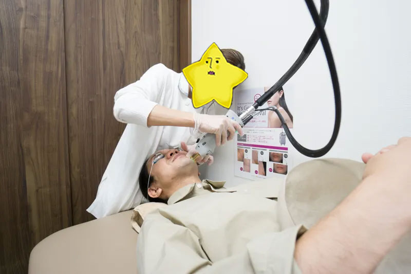 照射時間は範囲が大きいと長くなりますが、例えばお顔周りや、両ワキ、膝下など一部分だけだと大体15分くらいで終わりますね。