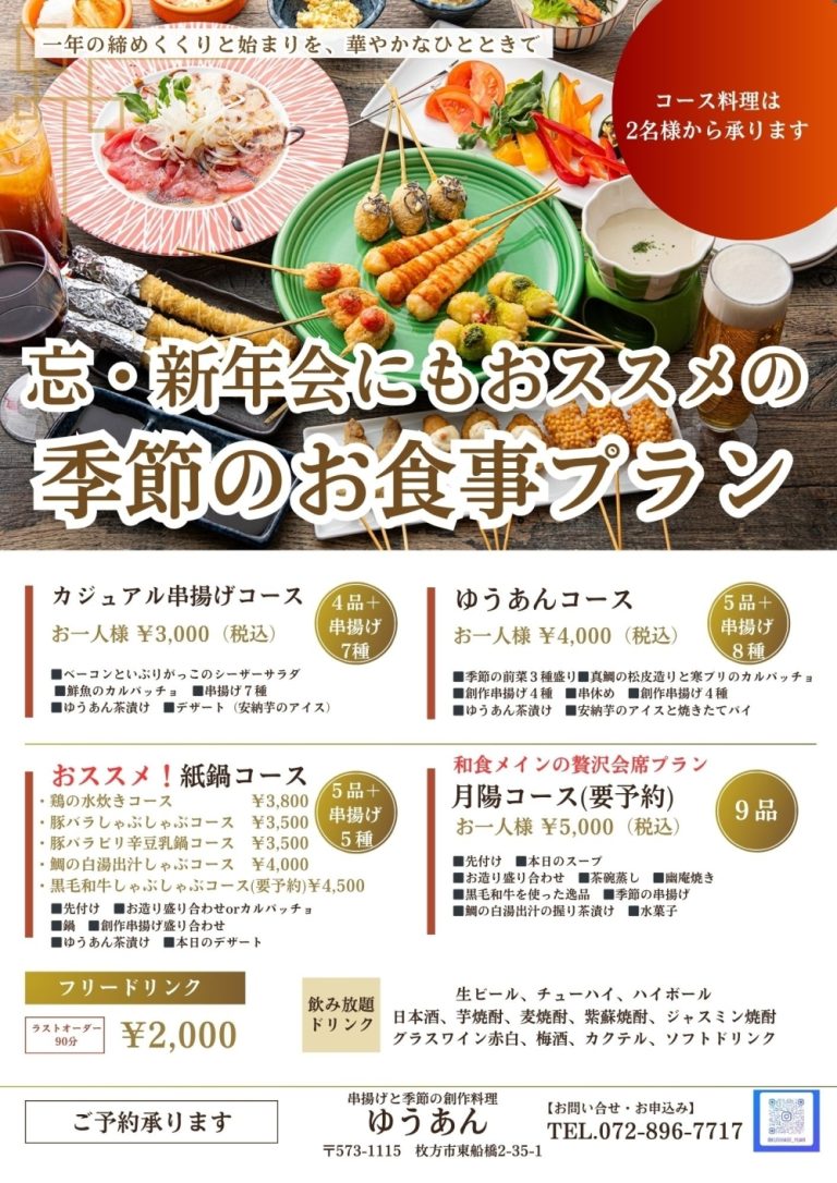 忘年会・新年会各種お集まりににオススメ!季節のお食事プラン|串揚げダイニング ゆうあん