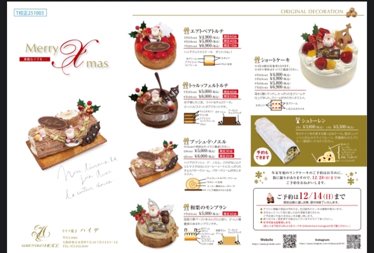 2025年クリスマスケーキのご予約受付中です!|ドイツ菓子 ハイデ