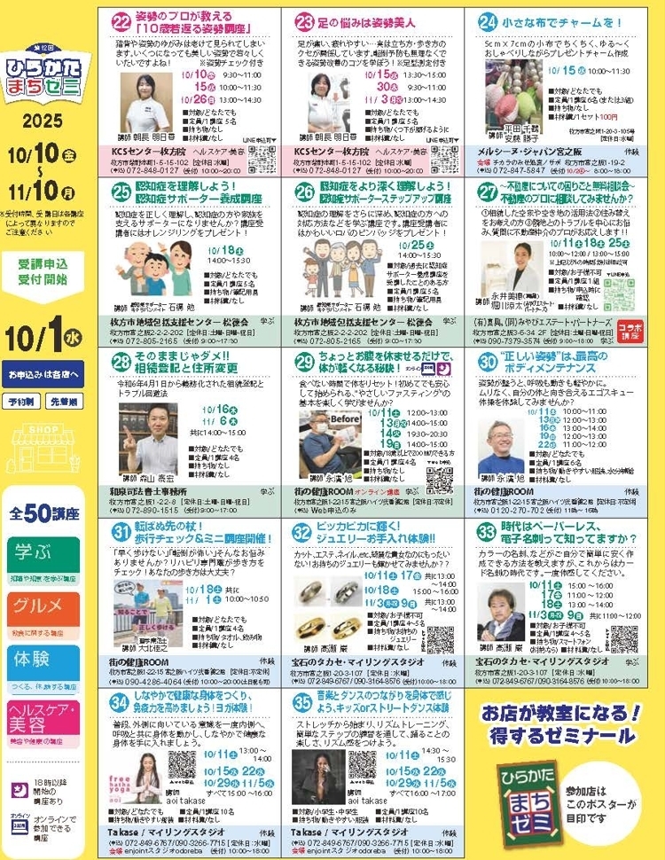 2025年 第12回「ひらかた まちゼミ」開催!全50講座が10/10(木)よりスタート ②|まいぷれ事務局【枚方・交野・寝屋川】