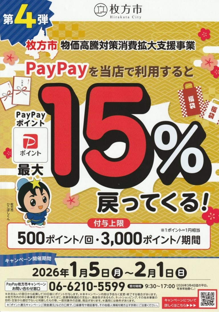 ■ 枚方市のPayPayキャンペーンで、家具の田辺も最大15%還元対象です 日頃より家具の田辺をご愛顧いただき、誠にありがとうございます。 本日2026年1月5日(月)から2月1日(日)まで、枚方市が実施する「PayPa […] -