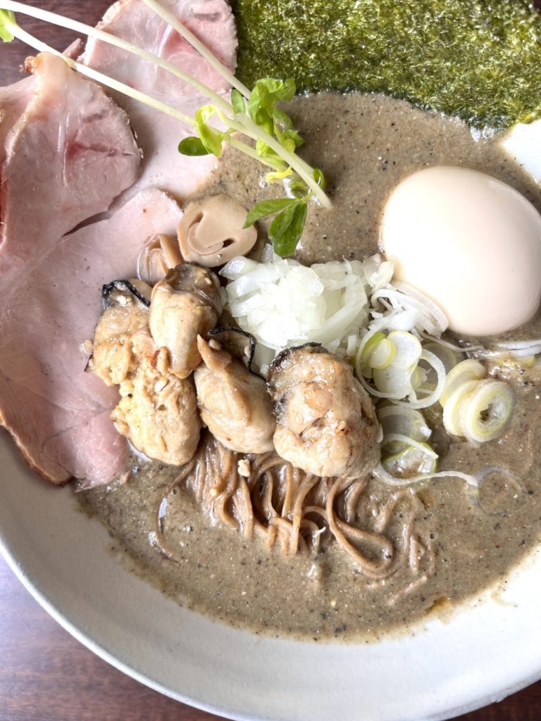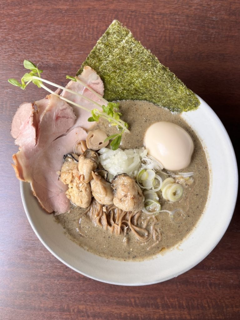 新限定「牡蠣のコンフィと焦がし泥煮干し低糖質ラーメン」スタートしました|煮干し拉麺 アンチョビー