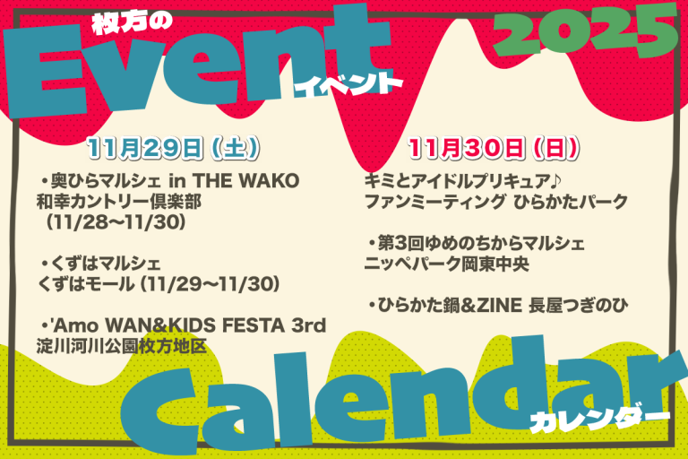 ひらつーメンバーにより厳選されたイベントのみ載せる”使える”イベントカレンダー、それがこの「枚方市の注目イベントカレンダー2025」! イベントの情報提供、お待ちしております!ございましたらぜひこちらの情報提供フォームか […] -