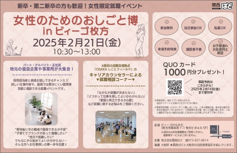 枚方ビオルネの「ビィーゴ枚方」で『公文書写 合同発表会』『美文字体験』『シニア教室体験』『無料体験相談会』が開催されるようです。 以下、主催者の方からのメッセージです! どなたでもいつからでも始められる 枚方ビオルネ、ビ […] -