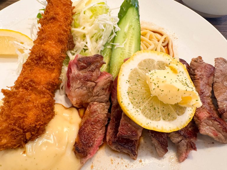 「洋食かりん」の『ステーキとエビフライ』など(枚方ビオルネ)【ひらつーグルメ】