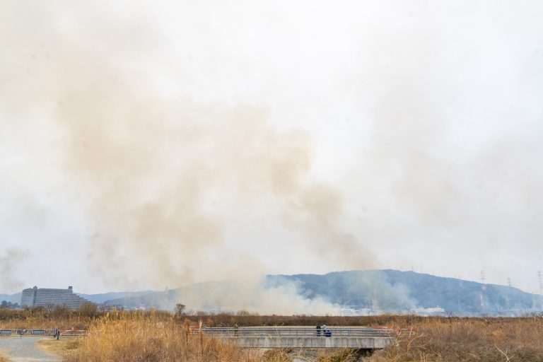 淀川方面に見える煙は高槻側のヨシ原焼きによるものです。 高槻市の鵜殿ヨシ原のヨシは雅楽の楽器「篳篥(ひちりき)」のリードに使われており、世界中のここ高槻でしか採れないというかなり貴重なもの。 そのヨシを育てるための環境作 […] -