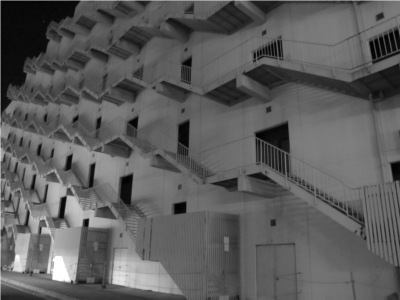 枚方市駅前の近鉄百貨店の裏口にて。こんな階段めずらしくないですか? -