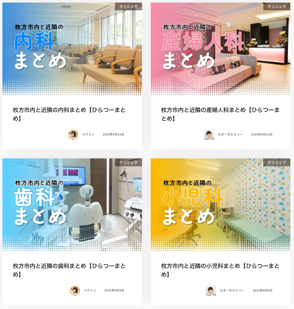 こんな感じでいろんな企画を検討中なので、お家の近くのクリニックを探したり、素朴な疑問を解決したり、ぜひあなたの枚方ライフにお役立てください〜!