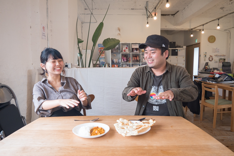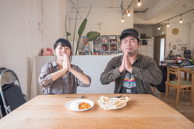 無印への愛が強すぎるパイン&デンチュウの二人はカレーの良し悪しを客観的に判断できない可能性があるため、先入観を取っ払ってカレーを食べてもらうということで、「ひらつー1のグルメ番長」すどん@ひらつーと「ひらつー1のカレー好き」のタクワン@ひらつーがいただきます