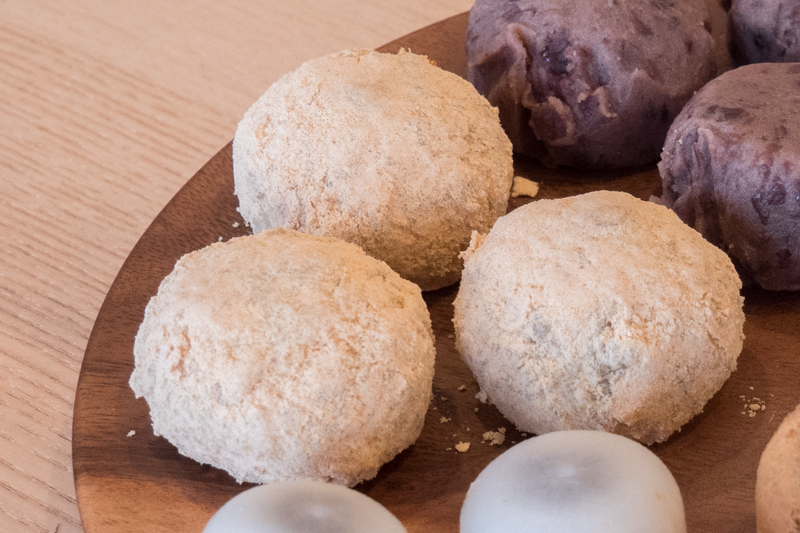 大口開けたら1口でもいけちゃいそうな、ちょうど良いサイズ感!きなこもあんこも楽しめるやさしい味です!