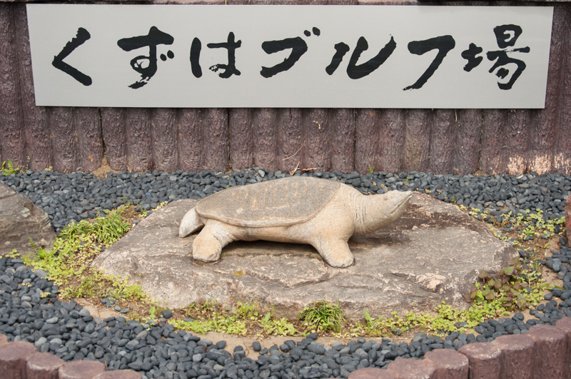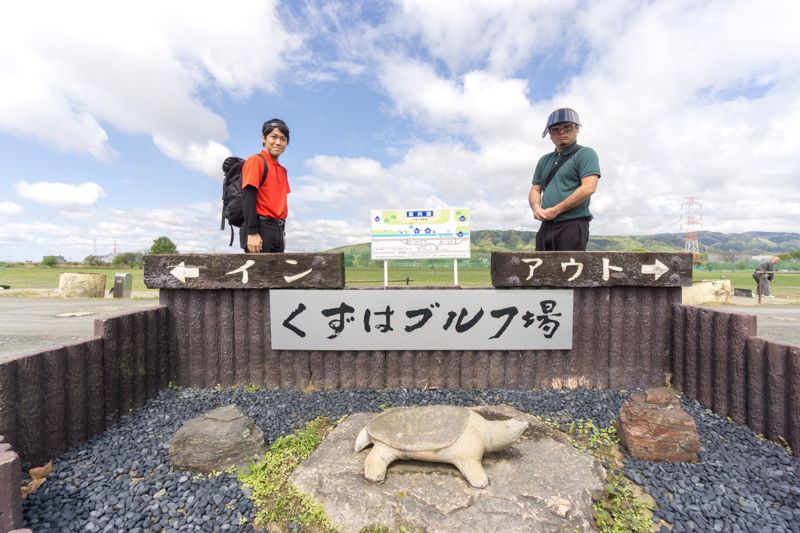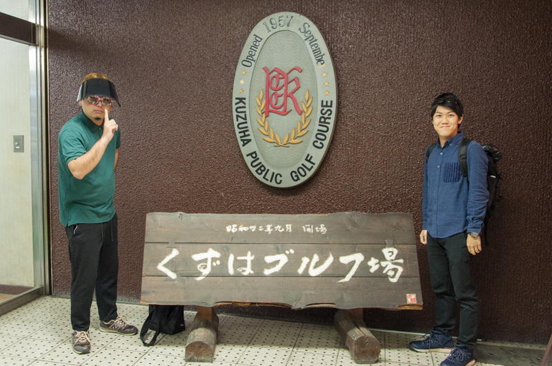 入ってすぐの位置にはくずはゴルフ場と書かれた看板がある、記念写真にもってこいのスポットが。
