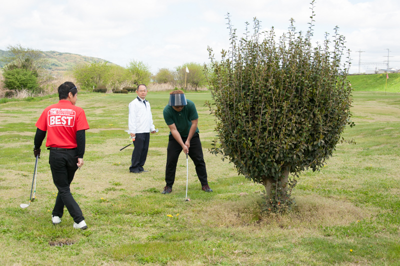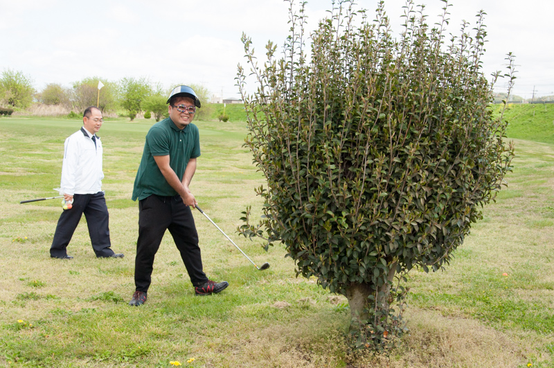 ボールは見事茂みへ消えていきました。これはOB、つまり最初からやり直しです。