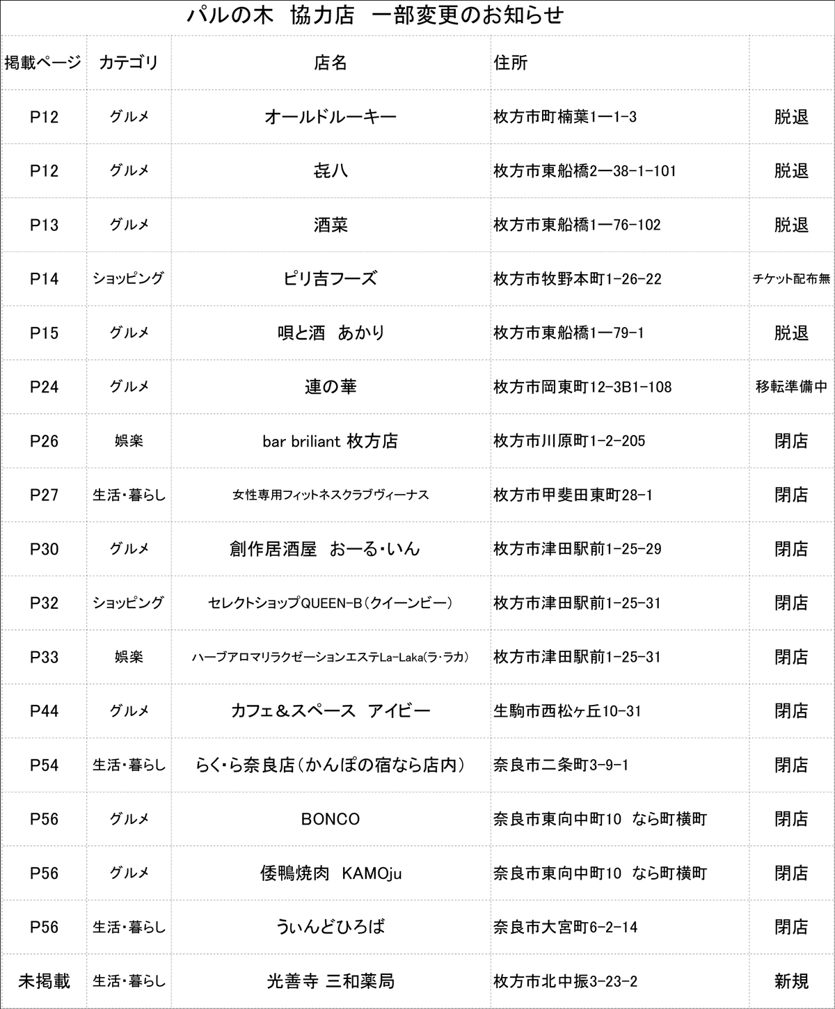 あと、パルの木ネットワークって枚方近隣市はもちろん奈良でも展開してるんやって!