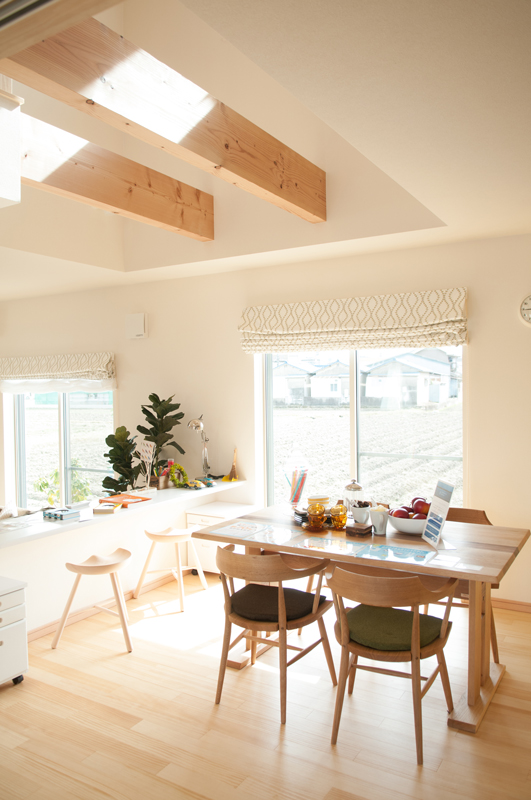 船の甲板を想像すると一番奥のキッチンにいるママがまさに「キャプテン」の位置でダイニングのパパやリビングの子供と楽しく会話している姿が浮かんくる素敵な間取りです
