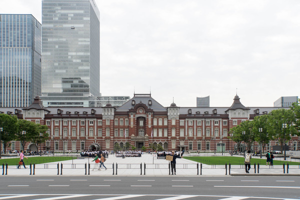 「駅内のサイネージかな?電車に乗ってもいいけど、その前に新しくできた東京駅の広場にいってみたいねん」