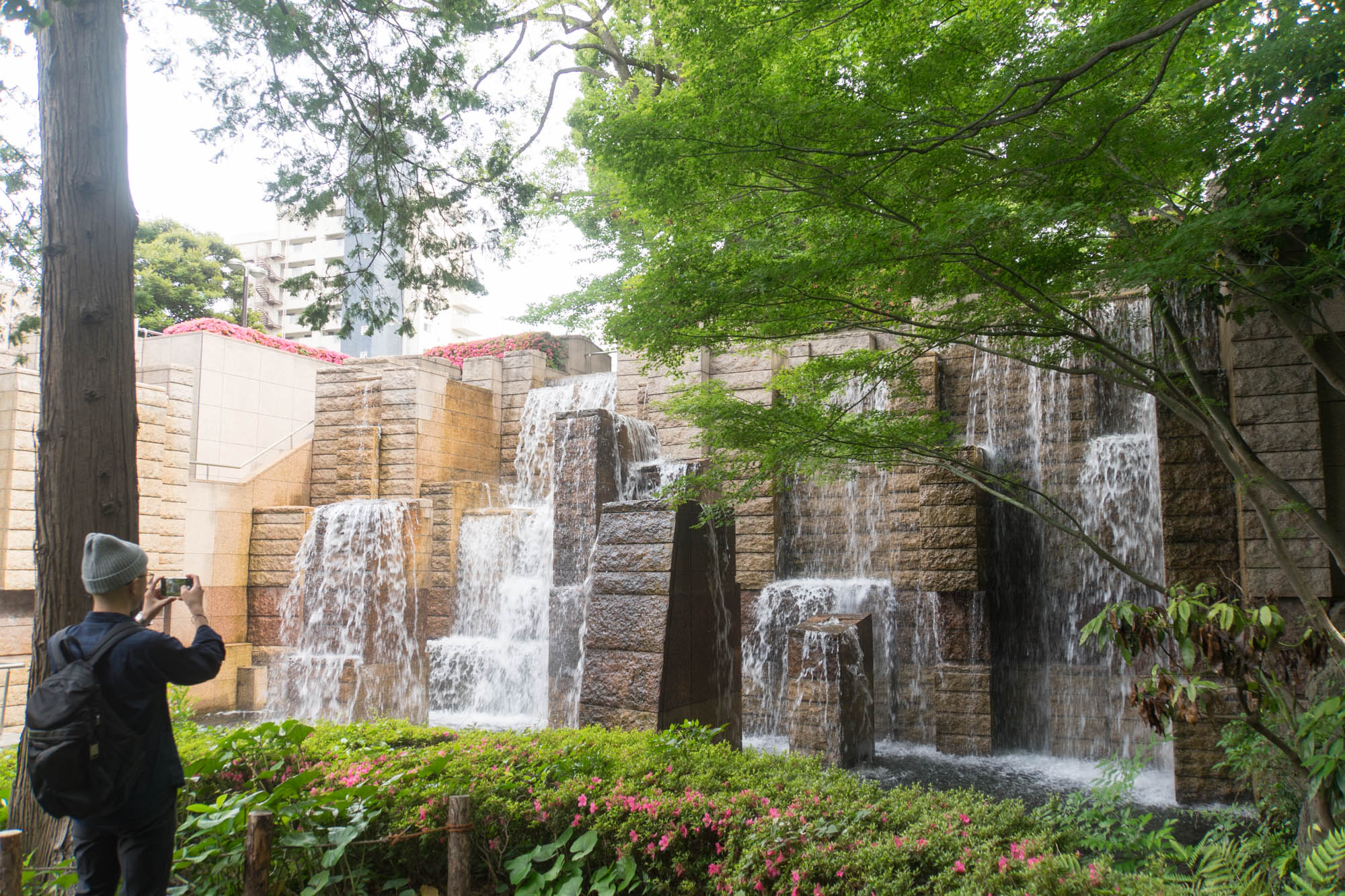 こんな風に人工的な滝もあって、無料で入ることができる、素敵なお庭!