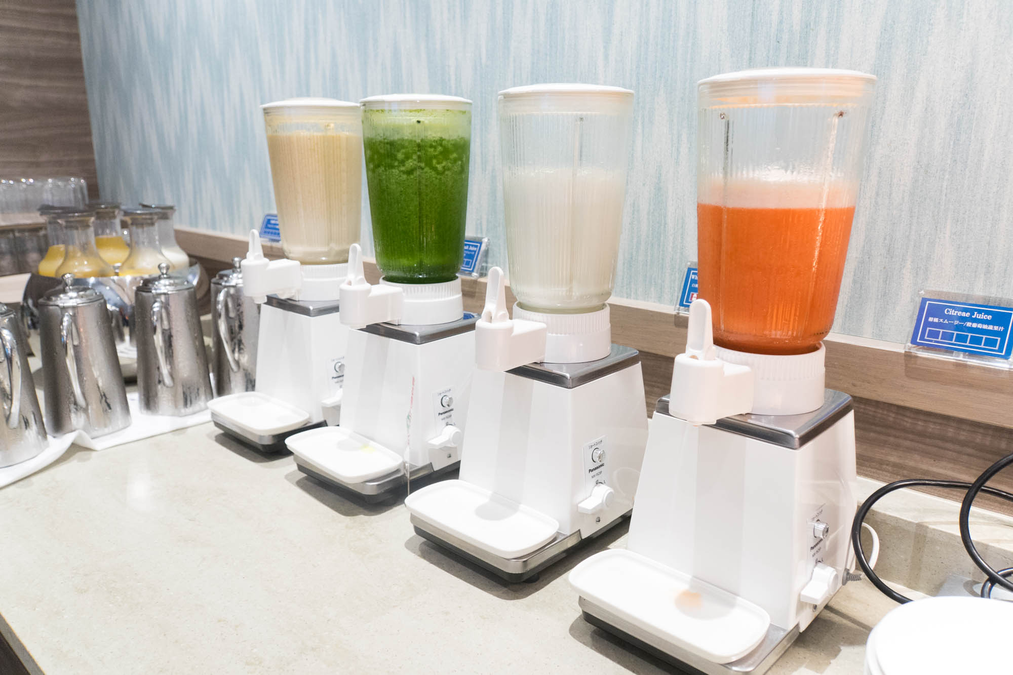 (スムージーは4種類ありまして、この日は「小松菜とバナナのスムージー」「大阪ミックスフルーツジュース」「白桃とヨーグルト」「柑橘スムージー」がありました)