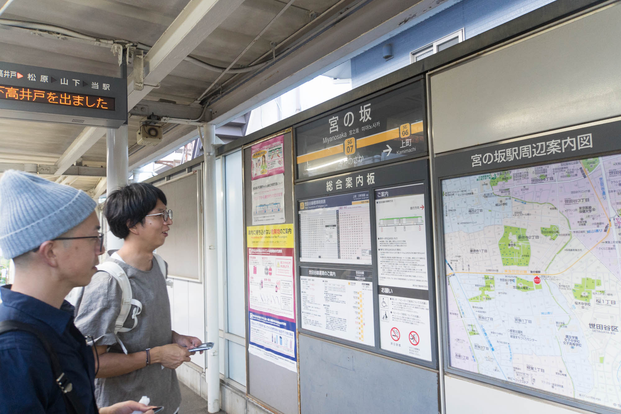 そうして電車を乗り継いで、最後には東京にも路面電車みたいな電車走ってるんやとか思っちゃう東急世田谷線(→公式サイト)に乗り……