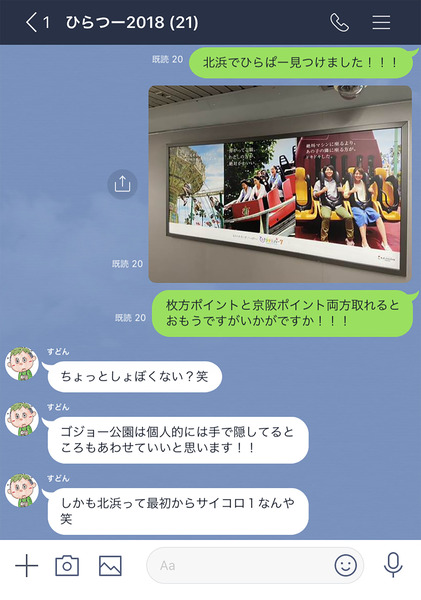 枚方ポイントを見つけたらひらつー内のLINEに画像などを送って、ひらつーメンバーにジャッジしてもらう形。撮れ高がイイと有利に進められるイイことがあるかも‥‥‥!?
