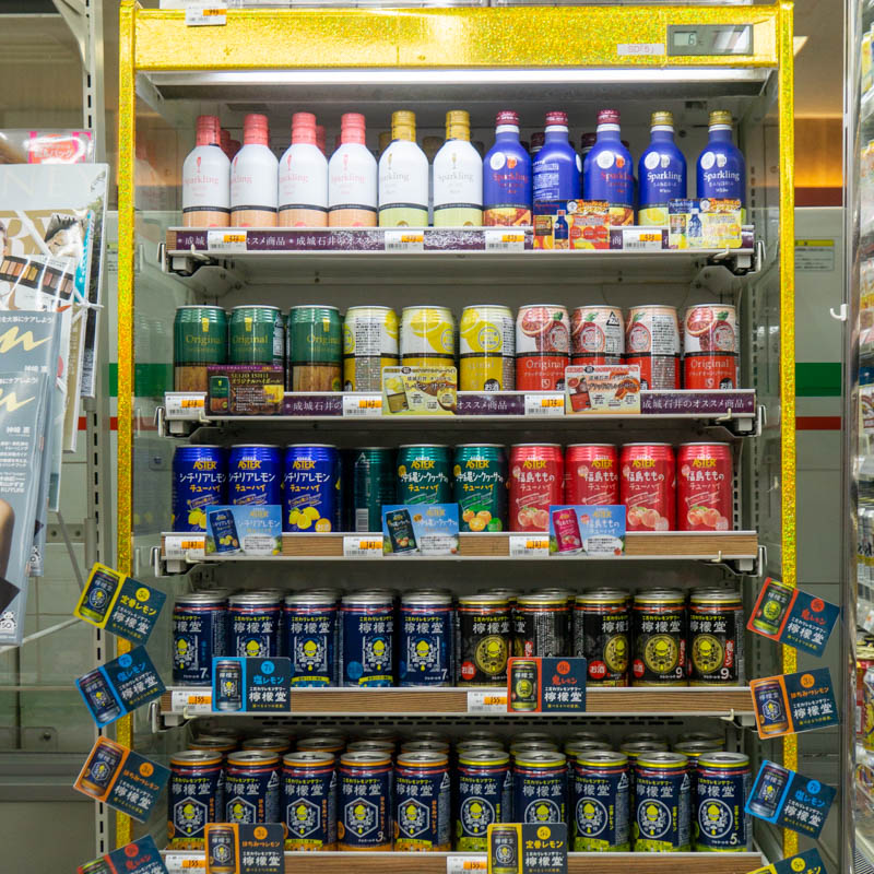 2段目から下は成城石井ではない商品になりまして、日本コカ・コーラが販売する「檸檬堂」のこだわりレモンサワー。塩レモン、鬼レモン、はちみつレモン、定番レモンの4種類もあったりと、めっちゃレモンや〜ん!