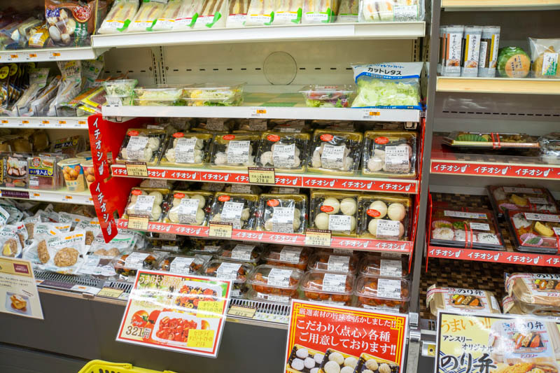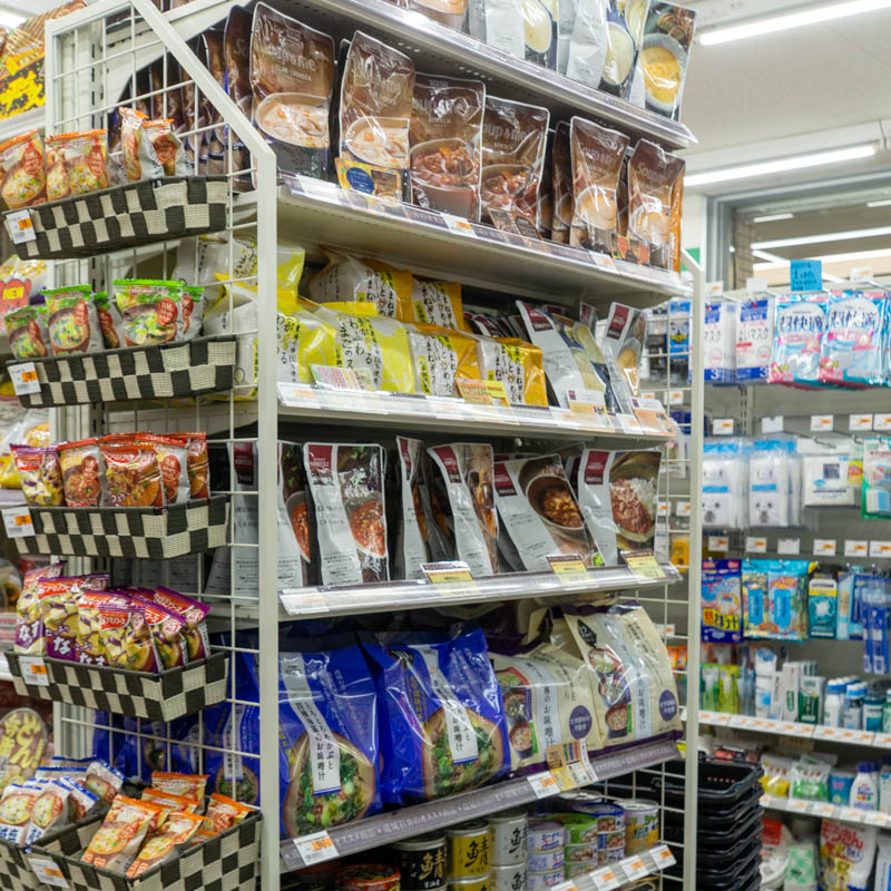 続いて紹介していくのはこちらのインスタントラーメンやお惣菜などが並ぶコーナー。