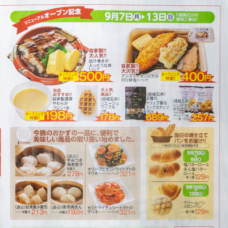 また今回のリニューアルでは、ひらかた もより市ベーカリーのパンが販売されていたり、新しくおかずやアンスリー自家製のお弁当も取り扱うことになったようです