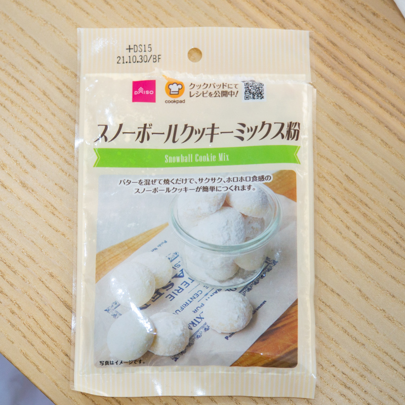ダイソーには様々なミックス粉がありまして、こ枚の方がチョイスしたのはスノーボールクッキーのミックス粉。