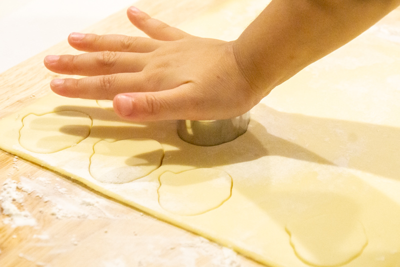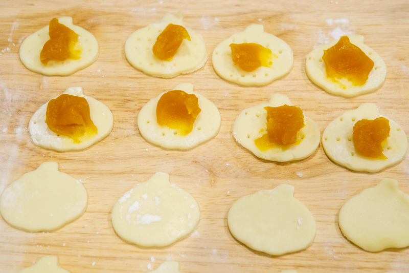 ということでパイシートをパンプキン型で型抜きして〜‥‥